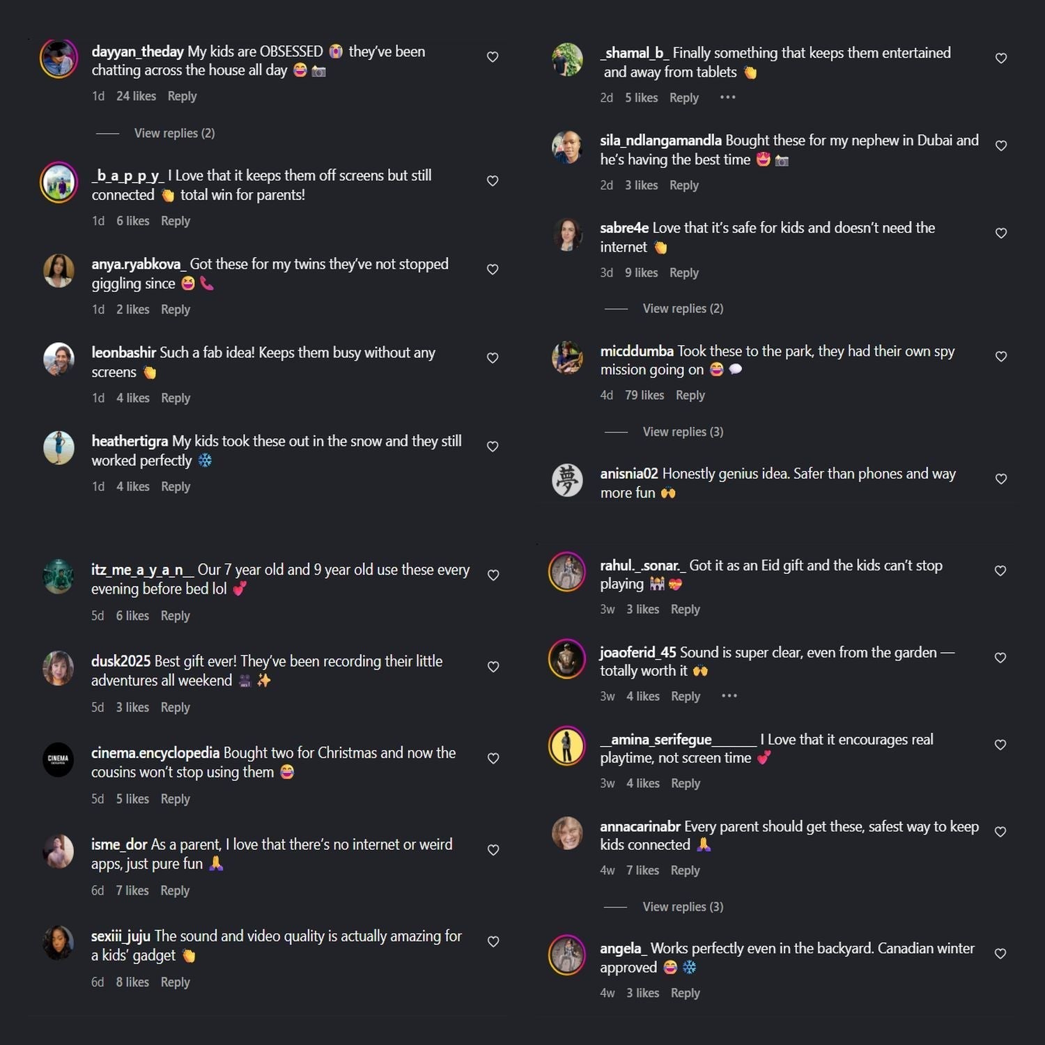 Meet GiggleCam™ Video Talkies — the safe, screen-free way for kids to stay connected and giggle for hours. With HD video, instant pairing, and crystal-clear sound up to 150 m, it’s the modern walkie-talkie that parents trust and kids adore.